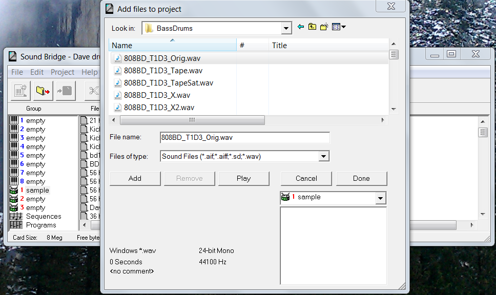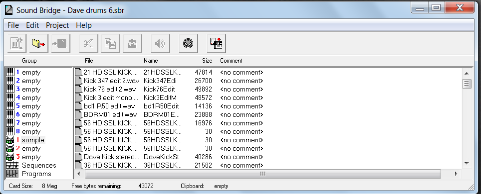 Create Sound Bridge Projects to control which custom samples, Programs, and Mixes are saved to the QSR's Flash RAM Card.